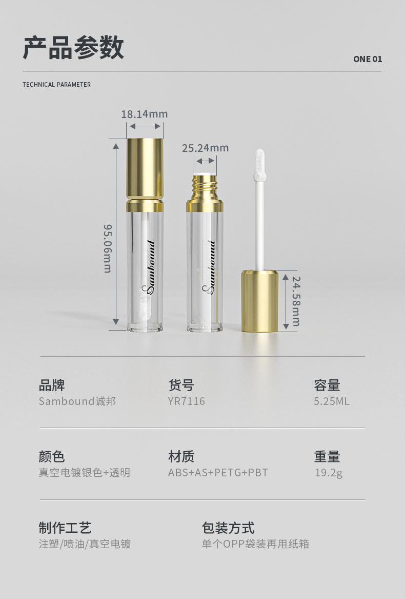 新款金色蓋5 25ml唇彩管空管定制,電鍍金色包材定制。