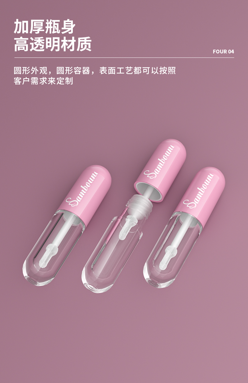 這款膠囊設(shè)計(jì)空唇泥管特點(diǎn):加厚瓶身高透明材質(zhì),可定制刷頭、顏色及l(fā)ogo,容量3 85ml