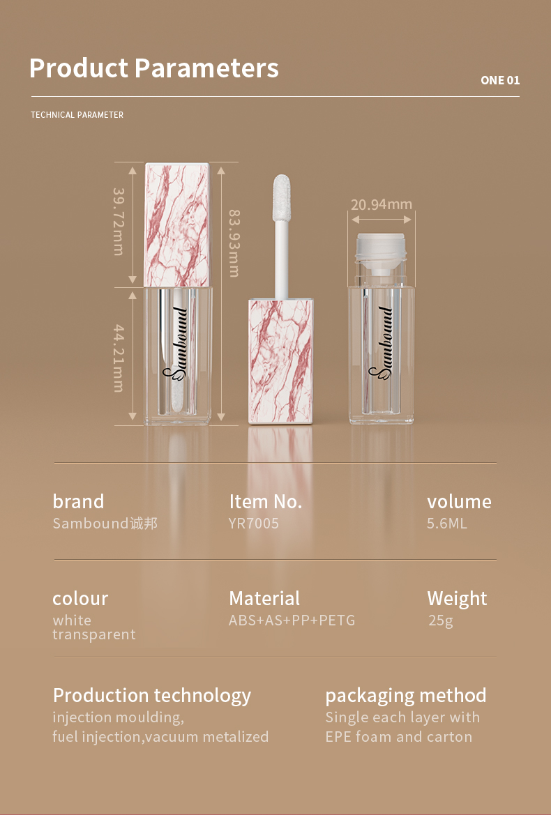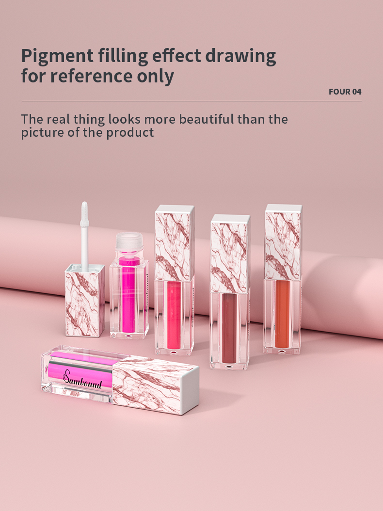這款大理石紋唇釉管特點:熱轉(zhuǎn)印大理石紋,可以定制紋路,方形5 6ml容量,也可以定制logo顏色的注塑加工廠家