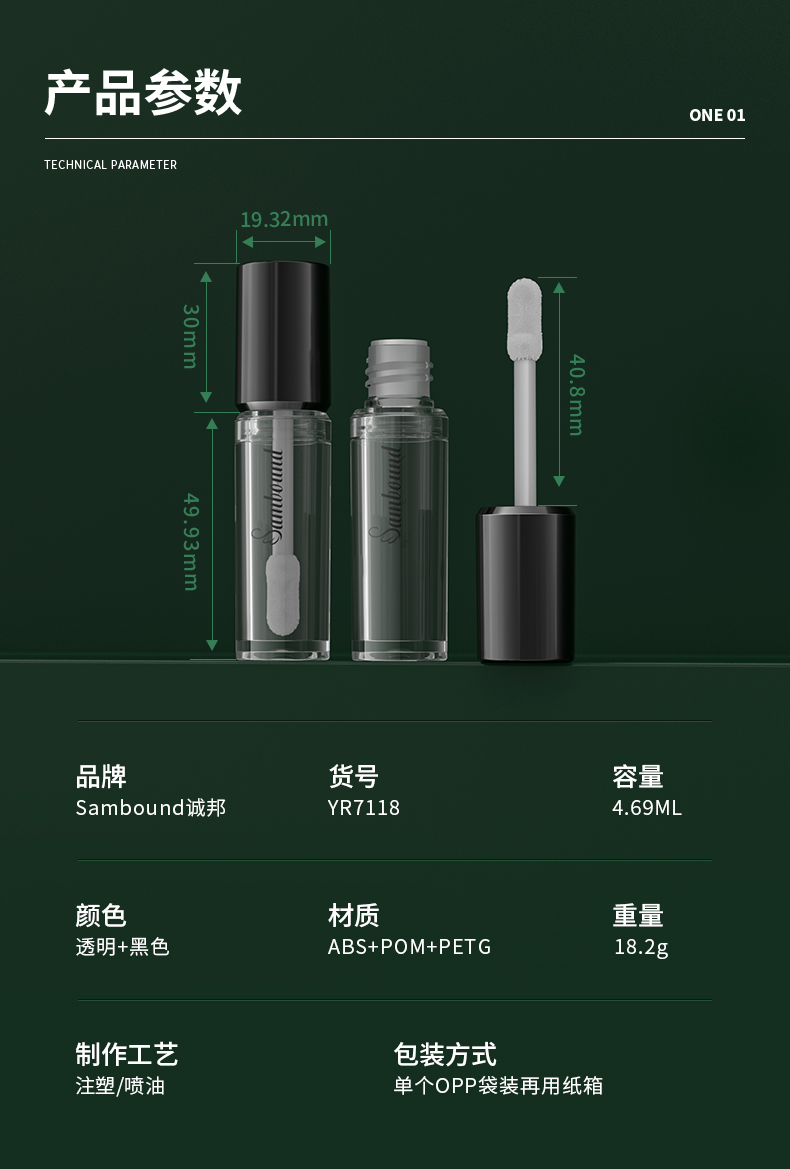 這款透明唇釉管4 7ml,可以定制顏色、絲印、注塑、logo以及其他的表面處理,誠邦化妝品包材注塑廠家也可以承接開模定制服務(wù)。