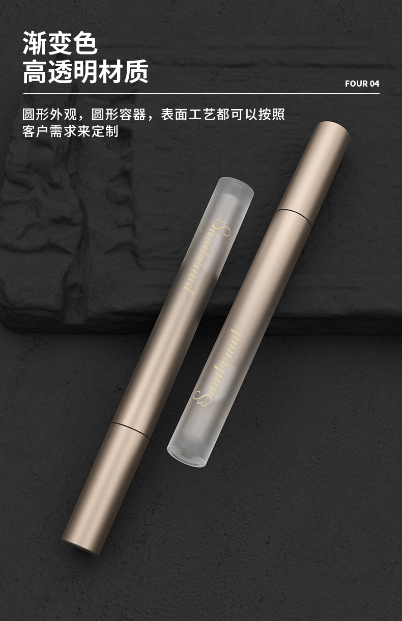 唇彩管空管,細長款表面工藝噴漆漸變色,手感細膩,可接品牌代工OEM ODM,工廠現(xiàn)有模具,可提供設計圖稿,免費拿樣。
