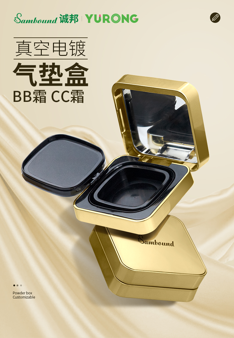 東莞廠家加工定制高端氣墊盒空BB霜盒帶可替換裝,金色電鍍注塑加工廠家為您加工定制化妝品包材,可以定制按照您的需求定制logo、顏色以及表面處理工藝。