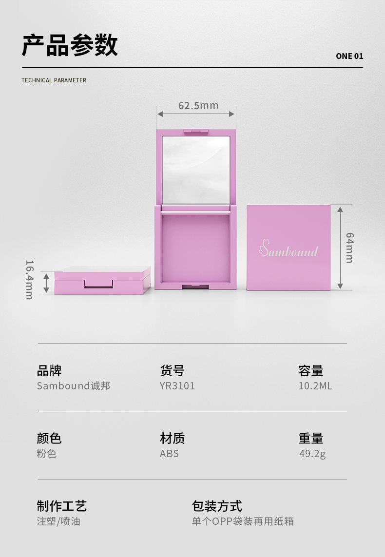 粉色方形腮紅分裝盒10g彩妝包材定制廠家,可以根據(jù)客戶需求定制注塑、絲印、噴涂、logo、電鍍等工藝