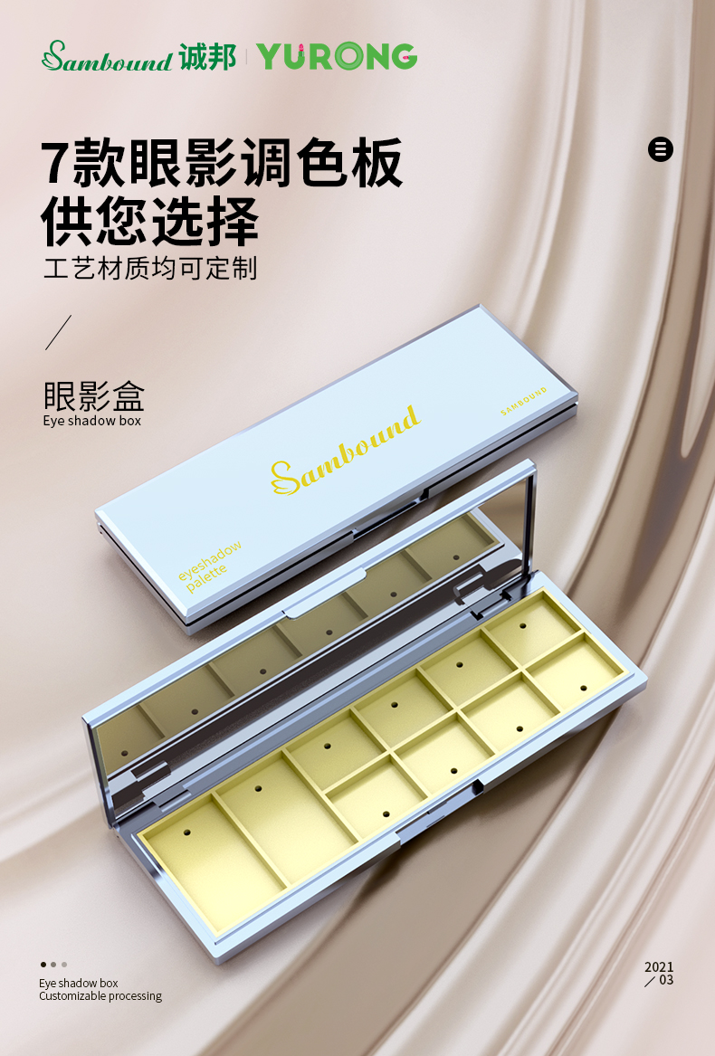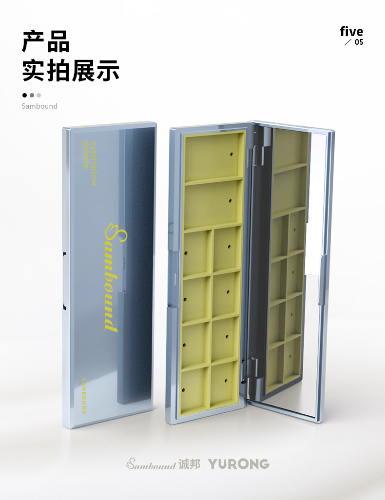 這款眼影盤采用電鍍工藝,我們誠(chéng)邦塑膠是可定制logo和顏色的化妝品包裝的廠家