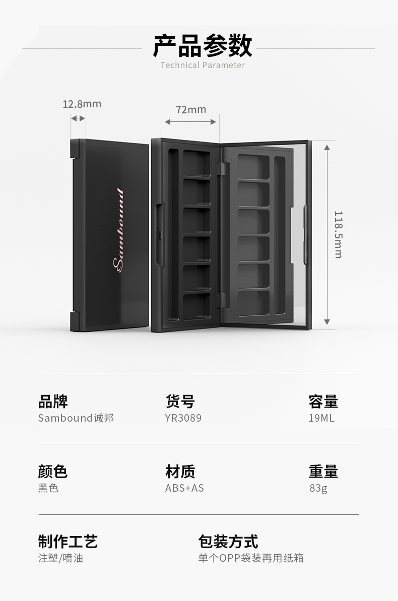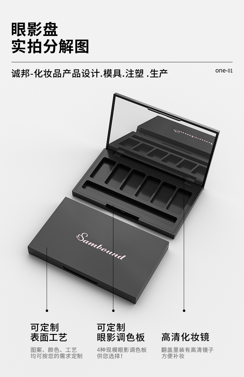6色空眼影盤盒包裝注塑加工廠商 彩妝包材定制