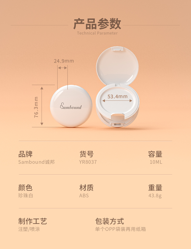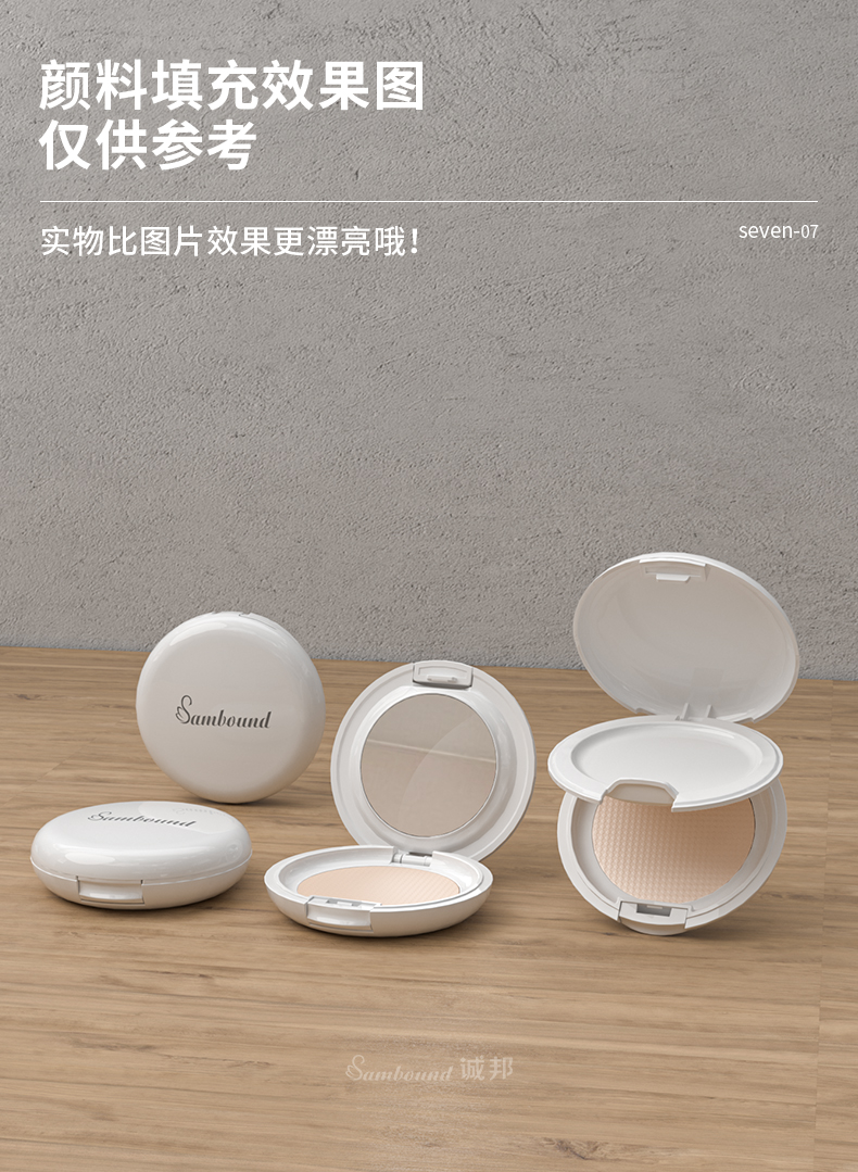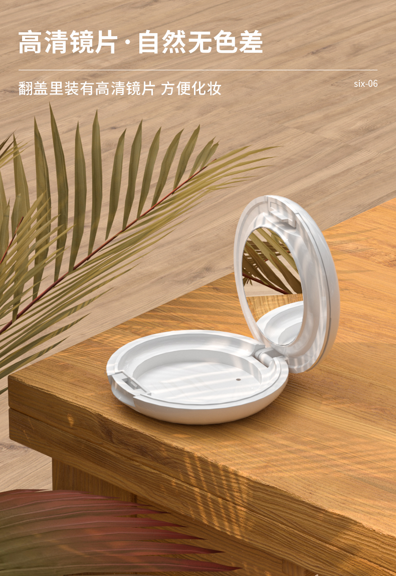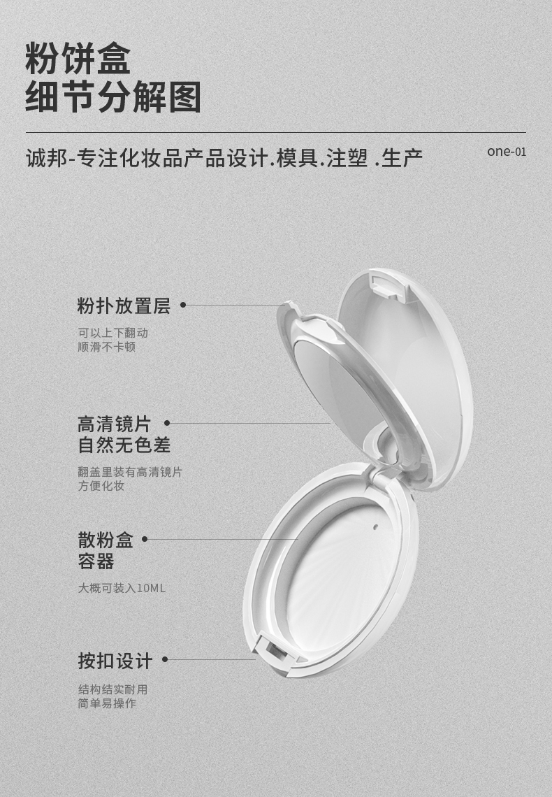這款帶粉撲層粉餅盒,誠邦圓形空的粉餅盒氣墊盒空盒簡約BB霜盒注塑加工廠,可以為您定制logo顏色,該產(chǎn)品內(nèi)置高清化妝鏡,10ml容量